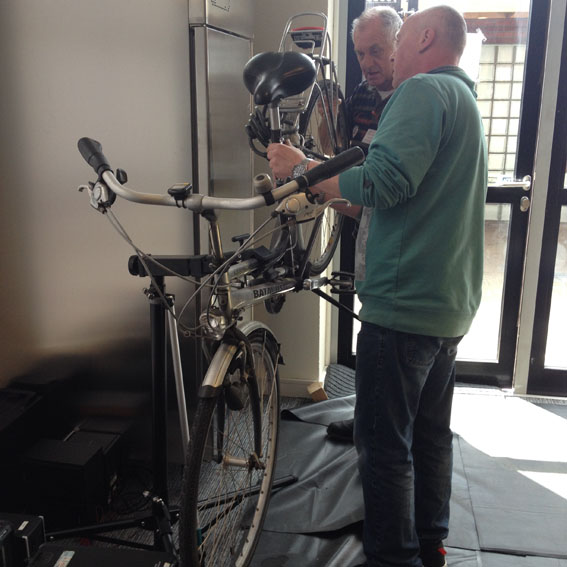 Voor een eenvoudige fietsreparatie kon de fiets in de reparatiestandaard